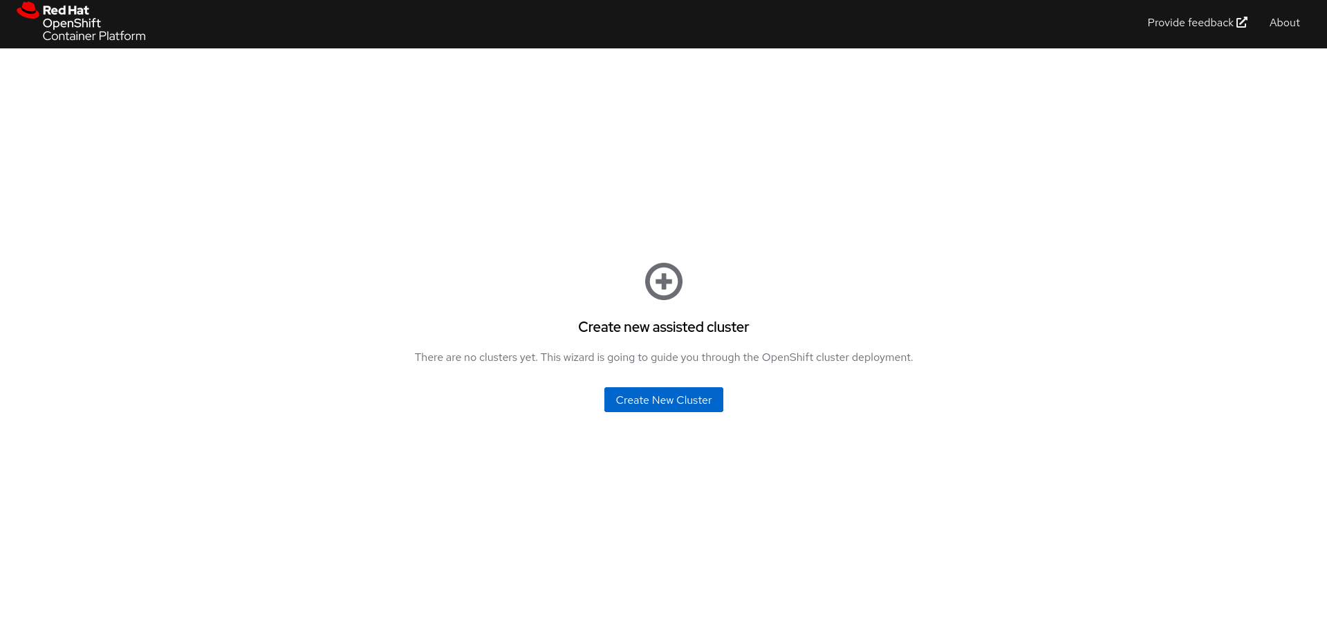 After that, we can login into the assisted-service web interface by visiting the url where the pod was started. In my case this is http://10.99.1.210:8080.