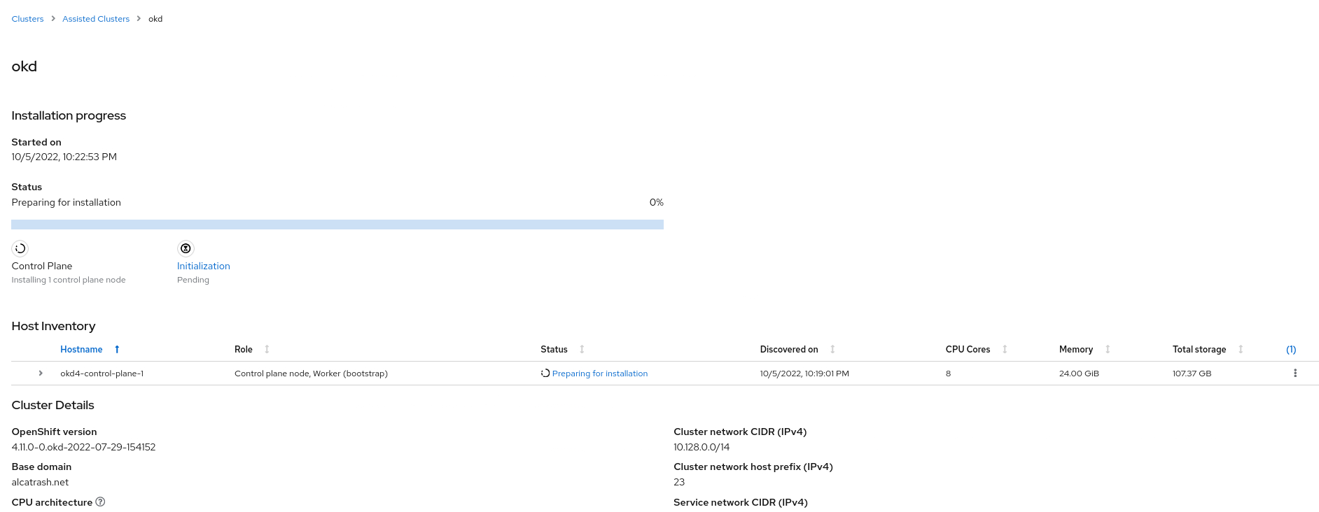 After some time the node will appear in the web ui from the assisted installer: